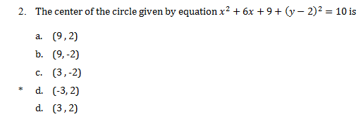 Sample Items from the Trigonometry and Analytic Geometry Component